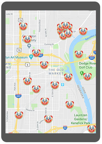 Need a clown? With our easy-to-use app, you can get clowns when you need them, where you need them. Day or night, clownr's got you covered. At the touch of a button, you can finally have a quality clown at your home or office within 30 minutes. If you're not entirely satisfied, your clown's on us - that's the clownr guarantee.
